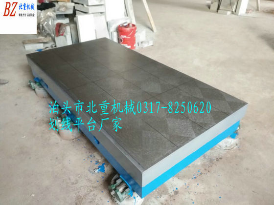 T型槽劃線平臺材質(zhì):高強度鑄鐵HT200-300工作面硬度為HB170-240,經(jīng)過兩次人工處理(人工退火600度-700度和自然時效2-3年)使用該產(chǎn)品的精度穩(wěn)定,耐磨性能好。